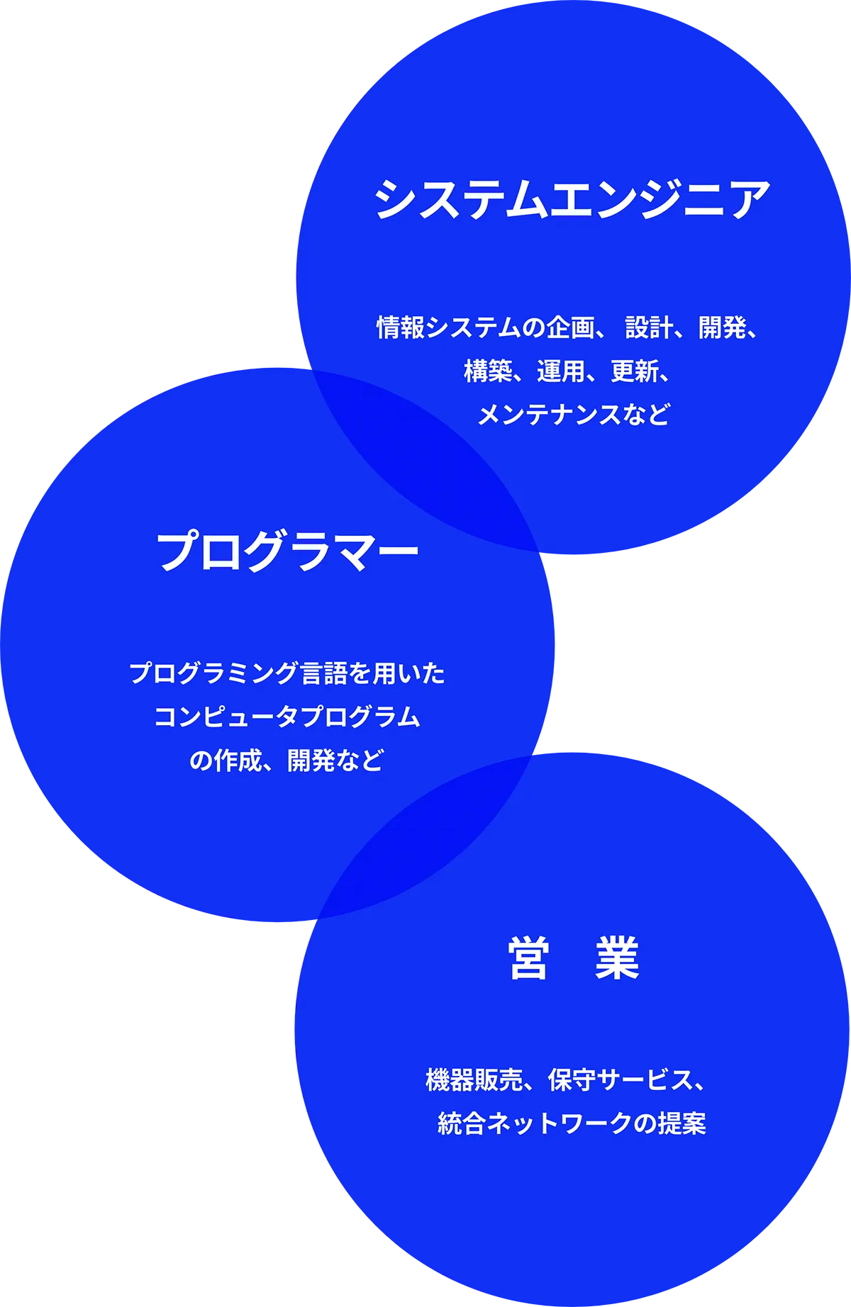 当社では、お客様(自治体やその関連団体)に新たなシステムサービスの提案の他、依頼された開発及び、パッケージソフトの導入、カスタマイズ(お客様の業務に合わせて改造)や機能追加の提案・設計・構築・導入・サポート・保守・運用管理といった多彩な業務を担っています。